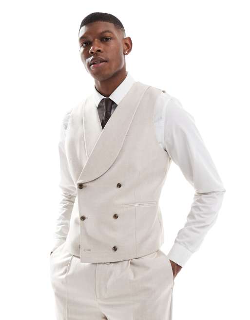 ASOS DESIGN – Beige, smal kostymväst i linneblandad twill