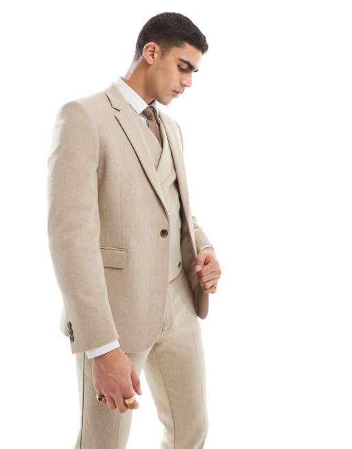 ASOS DESIGN – Beige, smal och dubbelknäppt kavaj strukturvävd ull, del av kostym
