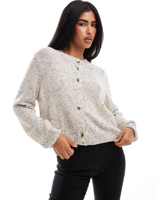 ASOS DESIGN – Beige, stickad kofta i kort design med rund halsringning