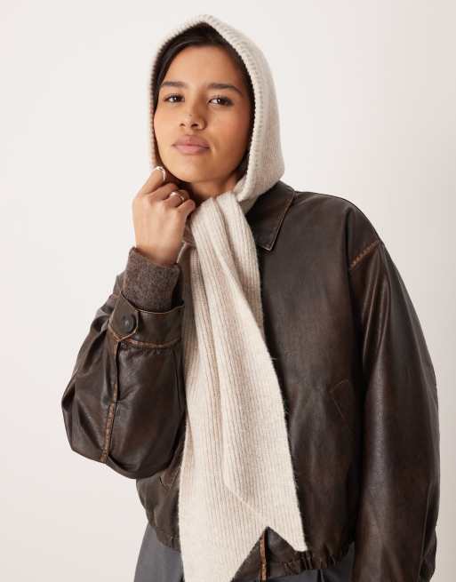 ASOS DESIGN – Beige, stickad scarf med huva