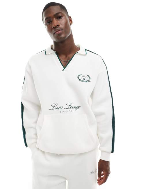 ASOS DESIGN – Beige sweatshirt i oversize med pikékrage, tryck och detaljer