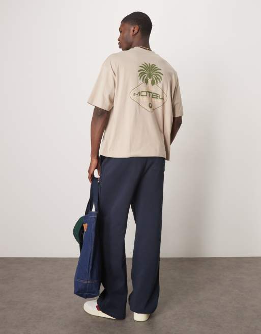 ASOS DESIGN – Beige t-shirt i oversize med boxig passform och palmtryck