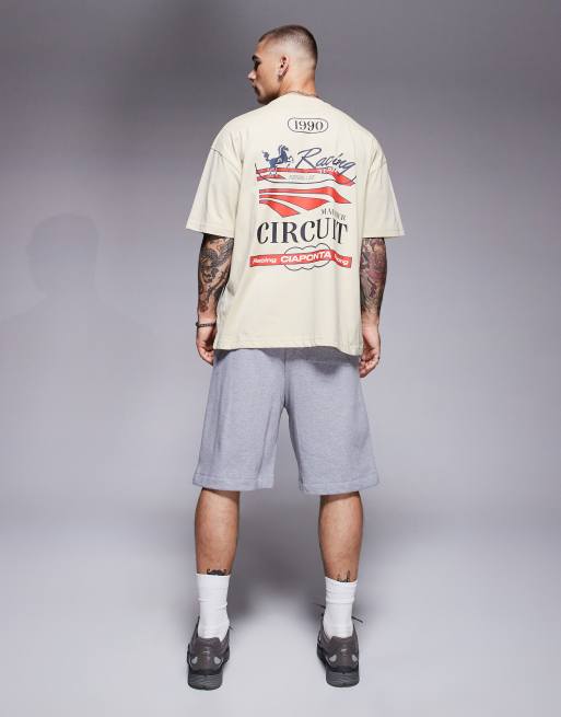 ASOS DESIGN – Beige t-shirt i oversize med racingtryck