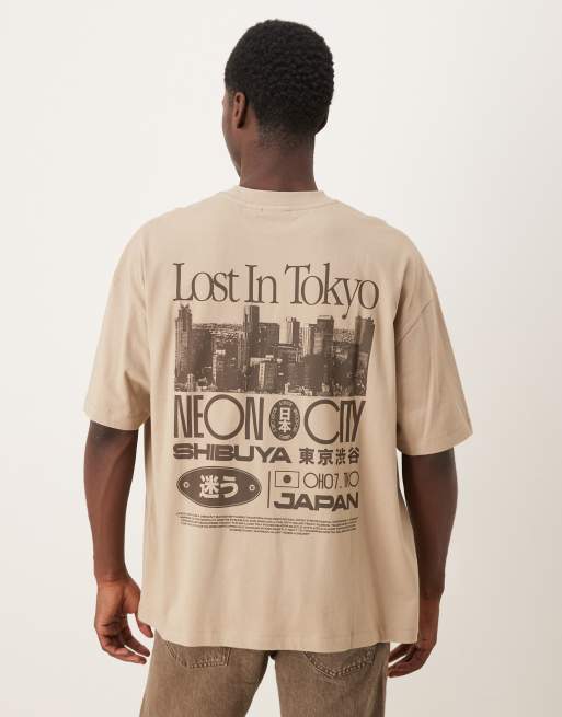 ASOS DESIGN – Beige t-shirt i oversize med Tokyo-tryck