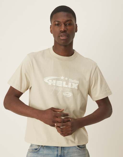 ASOS DESIGN – Beige t-shirt med boxig passform och tryck