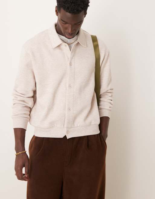 ASOS DESIGN – Beigemelerad kofta i oversize med boxig passform och krage