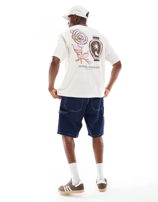 ASOS DESIGN – Beigemelerad t-shirt i oversize med tryck