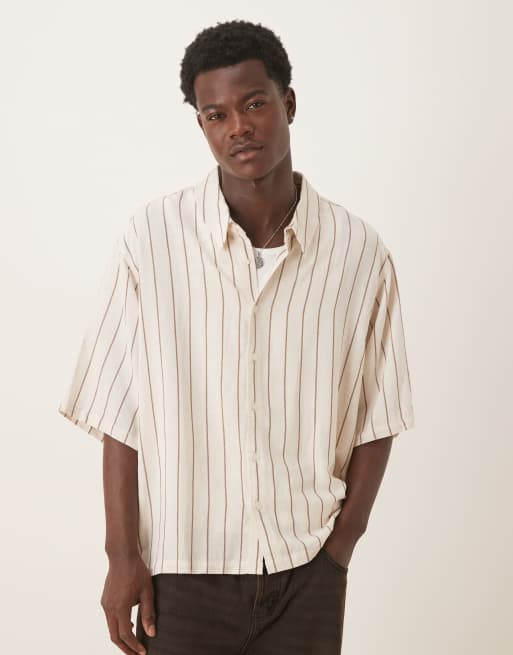 ASOS DESIGN – Beigerandig skjorta i oversize med halvlånga ärmar