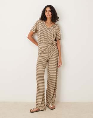 ASOS DESIGN – Beigerandiga byxor med vida ben, del av set