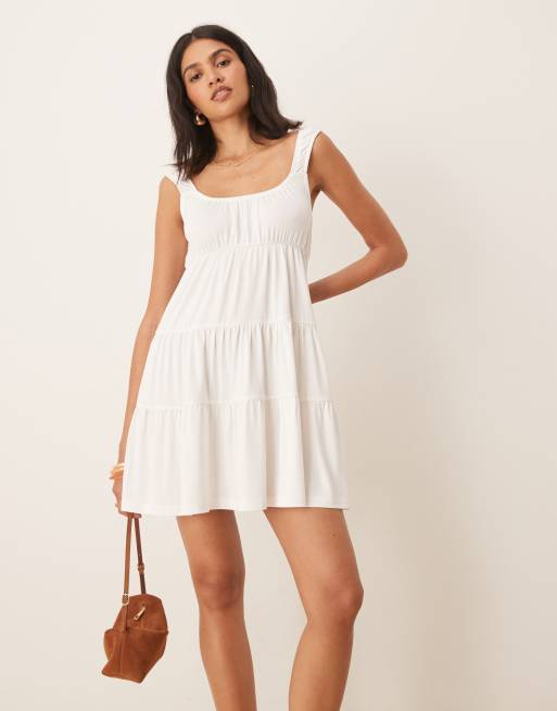 ASOS DESIGN – Benvit, panelsydd miniklänning i vid babydoll-modell