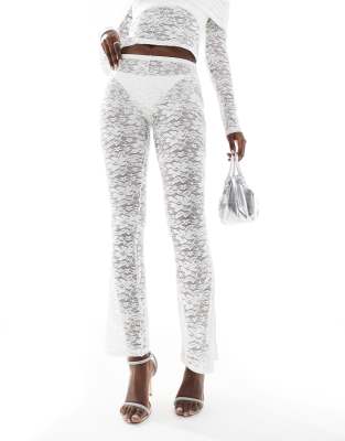 ASOS DESIGN – Benvita, utsvängda byxor i spets, del av set