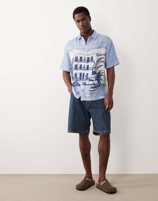 ASOS DESIGN – Blå, avslappnad skjorta med strandtryck