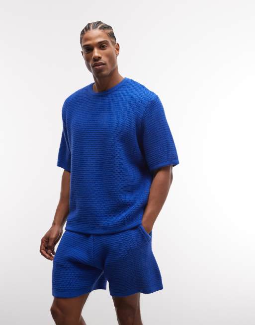 ASOS DESIGN – Blå, avslappnad, stickad t-shirt med textur, del av set.