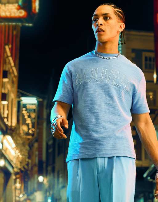 ASOS DESIGN – Blå, avslappnad t-shirt med nitat texttryck