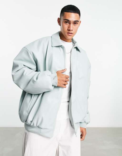 ASOS DESIGN – Blå bomberjacka i läderimitation och extra oversize