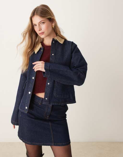 ASOS DESIGN – Blå, boxig jacka i canvas med kontrastkrage i manchester