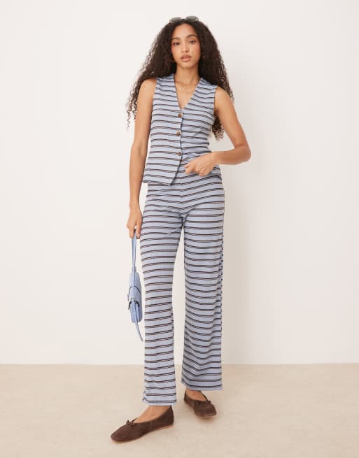 ASOS DESIGN – Blå, brunrandiga byxor med vida ben, del av set