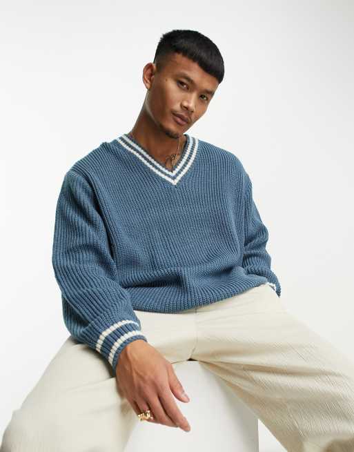 ASOS DESIGN – Blå, fiskarribbad crickettröja