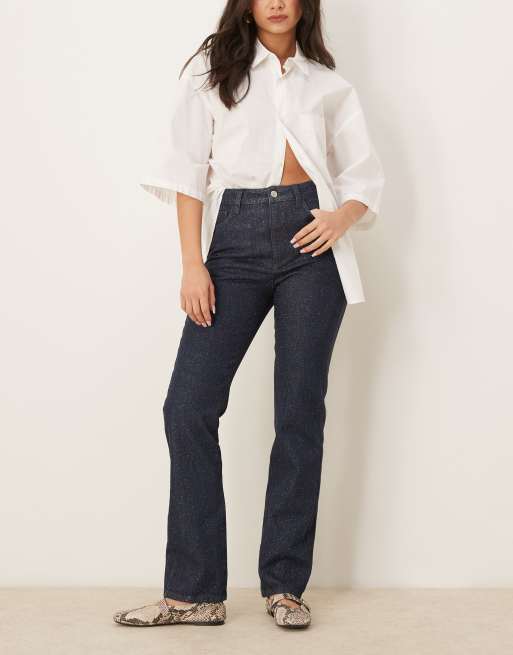 ASOS DESIGN – Blå, glittriga jeans med raka ben och 90-talsstil