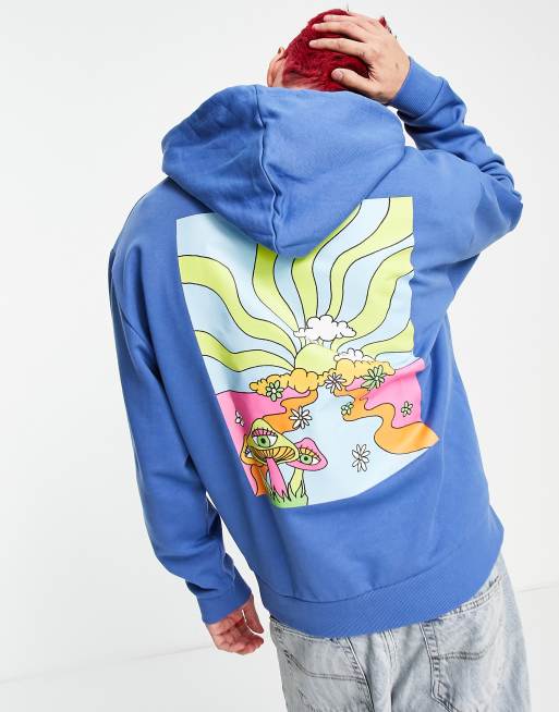 ASOS DESIGN – Blå huvtröja i oversize med solnedgång baktill