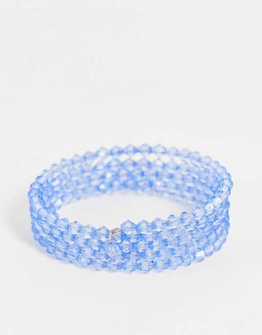 ASOS DESIGN – Blå manschettarmband med fasetterade pärlor och omlottdesign