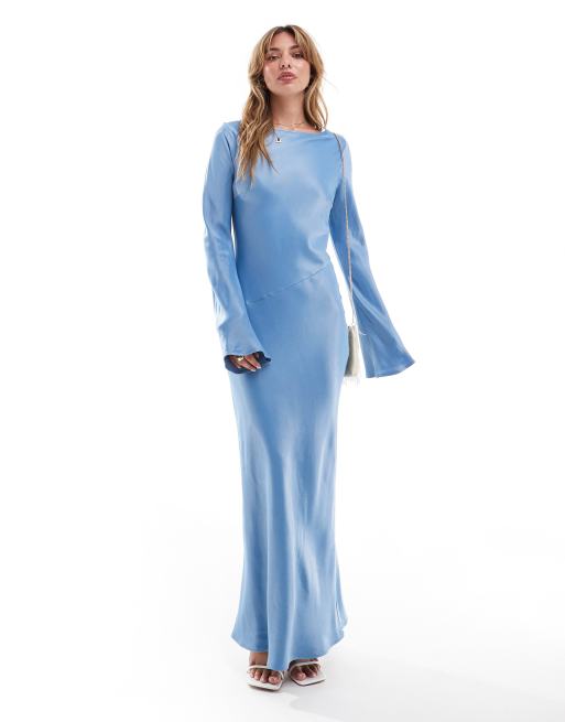 ASOS DESIGN – Blå maxiklänning i satin med utsvängda ärmar