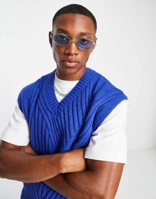 ASOS DESIGN – Blå, mixat ribbad väst