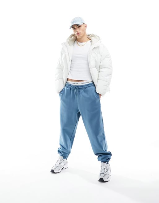 ASOS DESIGN – Blå mjukisbyxor i oversize och kraftigt material
