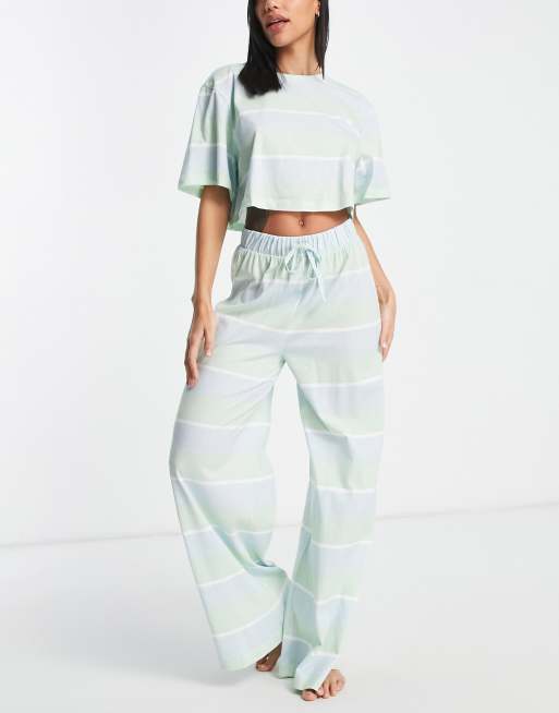ASOS DESIGN – Blå- och grönrandig pyjamas med T-shirt och vida byxor