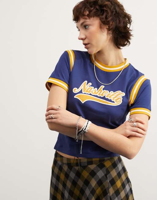 ASOS DESIGN – Blå och gul, liten t-shirt med Nashville-tryck