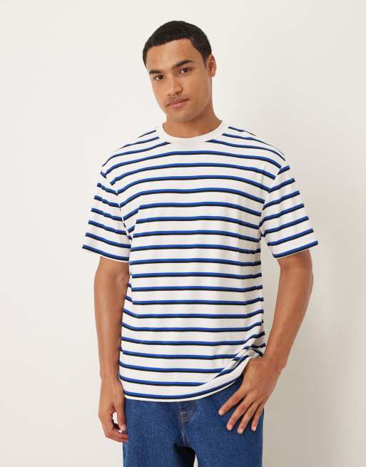 ASOS DESIGN – Blå och vitrandig, strukturerad t-shirt med avslappnad passform