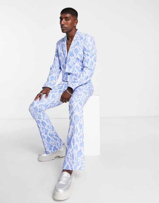 ASOS DESIGN – Blå, ormskinnsmönstrad, kort kostym