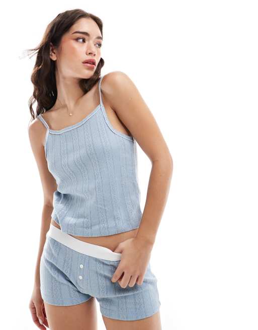 ASOS DESIGN – Blå, pointellestickad pyjamas med linne och shorts