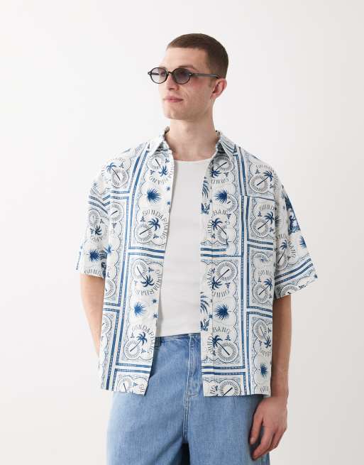ASOS DESIGN – Blå skjorta i oversize och linnemix med kakelmönster