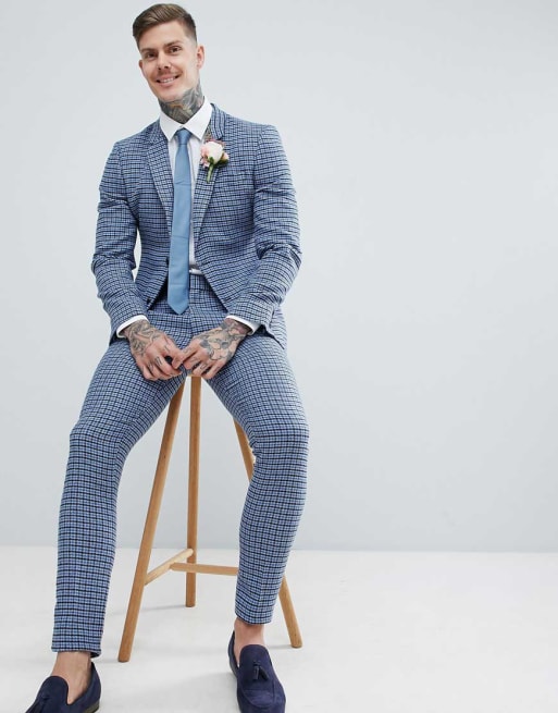 ASOS DESIGN – Blå, smårutig, super skinny kostym för bröllop