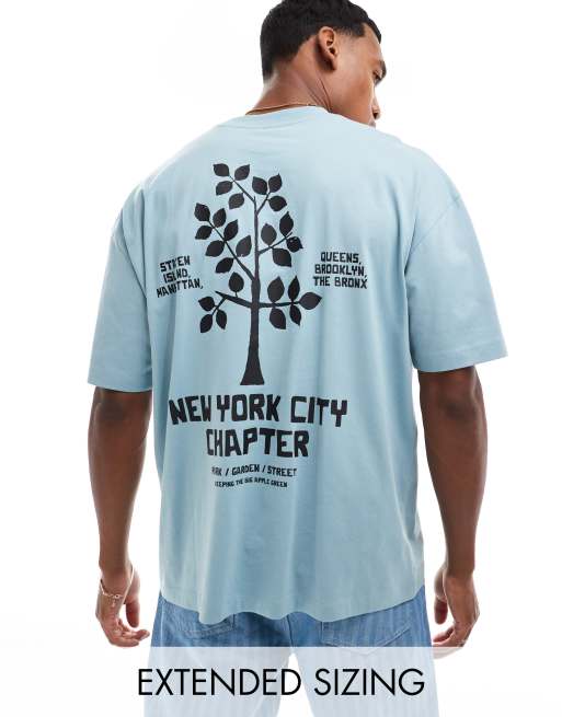 ASOS DESIGN – Blå, stentvättad t-shirt i oversize med NYC-tryck baktill
