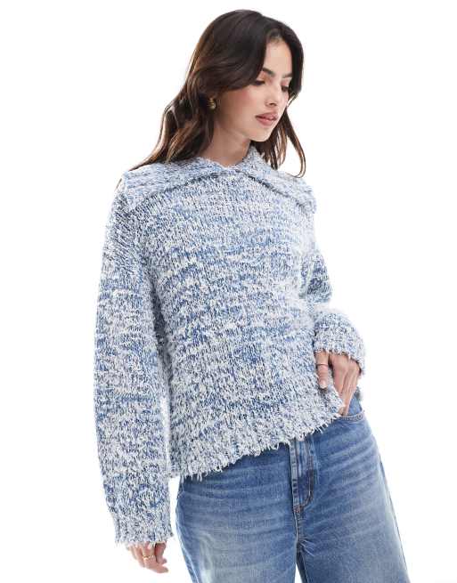 ASOS DESIGN – Blå, stickad tröja med krage och tvinnat, knottrigt garn