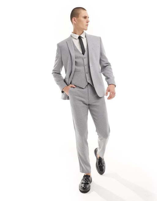 ASOS DESIGN – Blå strukturvävd kostym i ylle med smal passform