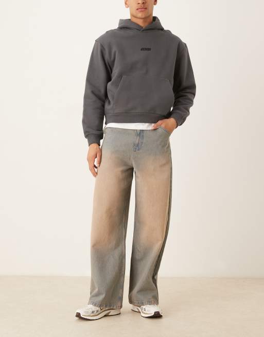ASOS DESIGN – Blå, superbaggy jeans i mellanljus tvätt med kraftig, röd ton