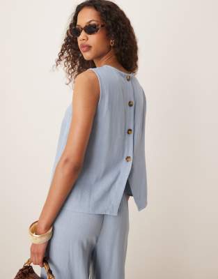 ASOS DESIGN – Blå topp i linne och shellmaterial med knappar, del av set
