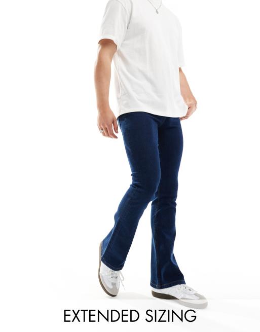 ASOS DESIGN – Blå, utsvängda jeans i mörk tvätt med stretch
