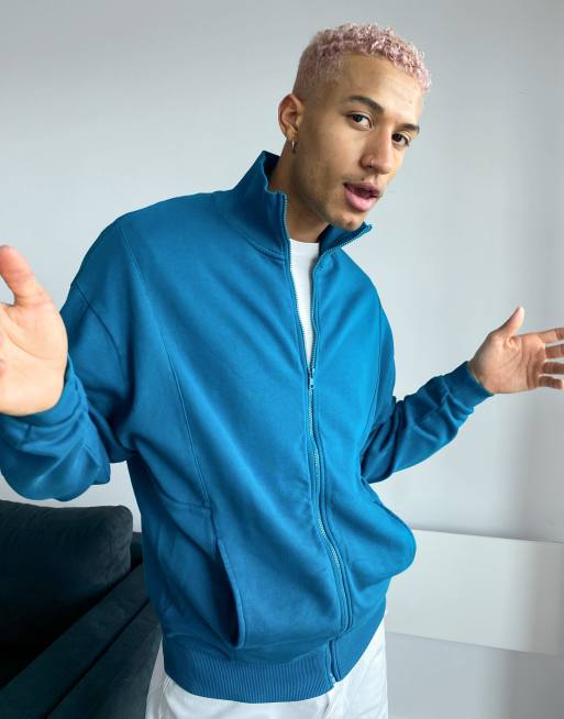 ASOS DESIGN – Blågrön träningsjacka i jersey och oversize