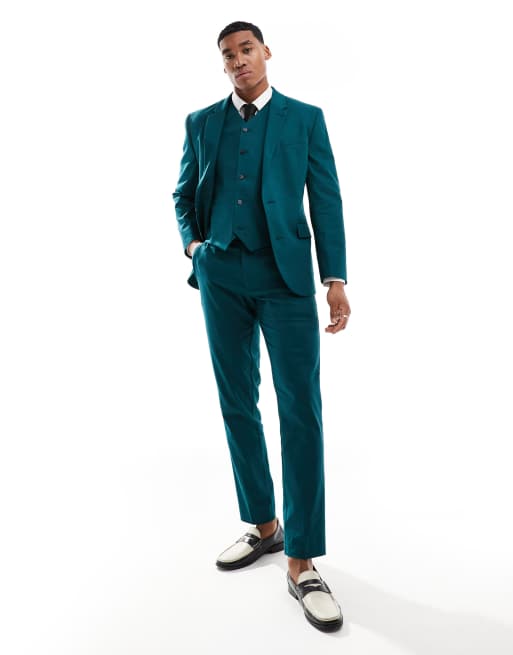 ASOS DESIGN – Blågröna kostymbyxor i linne med smal passform