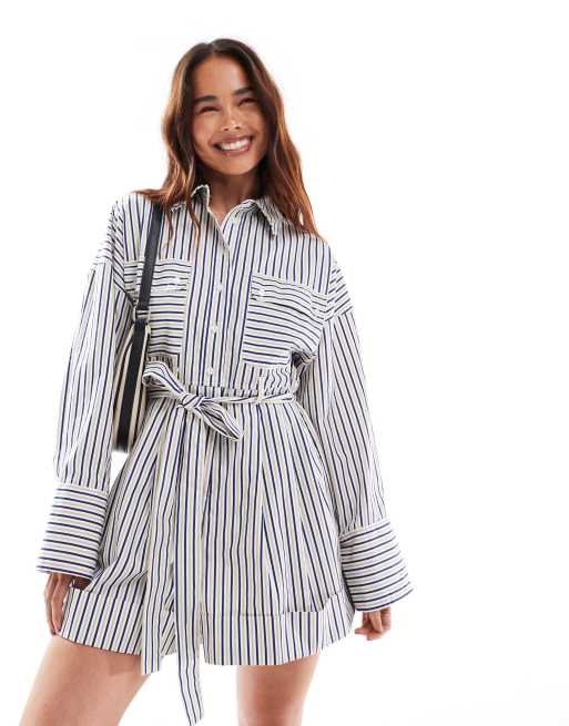 ASOS DESIGN – Blårandiga figursydda shorts med bluslager