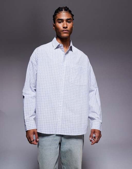 ASOS DESIGN – Blårutig skjorta i oversize med volym