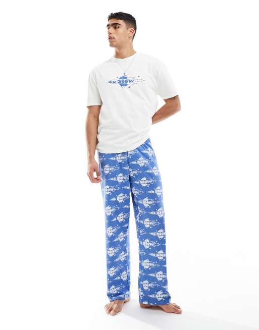 ASOS DESIGN – Blått pyjamasset med "Go slow"-tryck