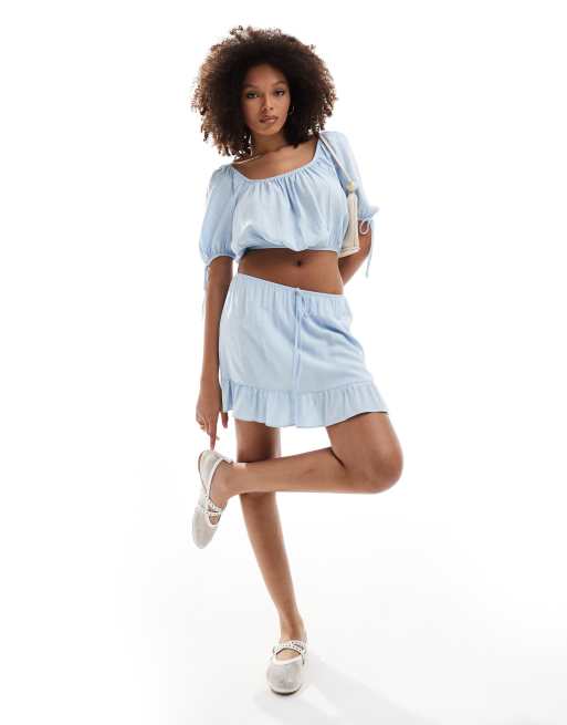 ASOS DESIGN – Blått set med kort, indragen blus och minikjol