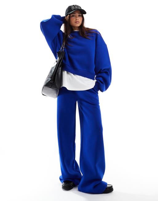 ASOS DESIGN – Blått set med mjukisbyxor med vida ben och sweatshirt med ballongärmar