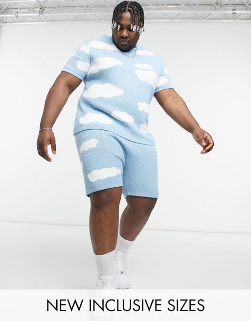 ASOS DESIGN – Blått stickat set med molnmönster