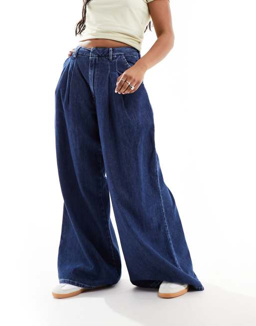 ASOS DESIGN – Blåtvättade jeans med vida ben och veck